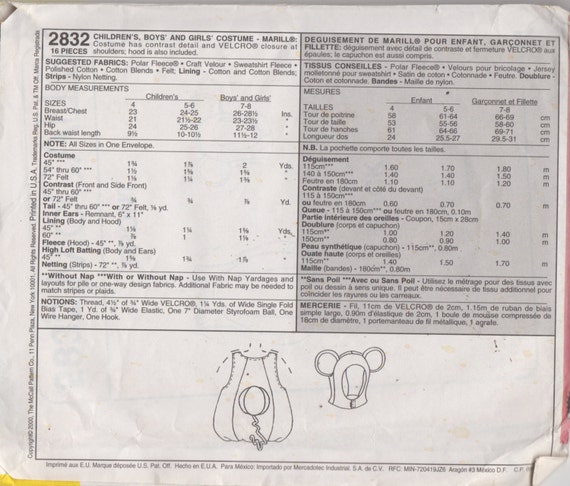 Mccalls 2832 Child Pokemon Costume Pattern Marill Nintendo Etsy
